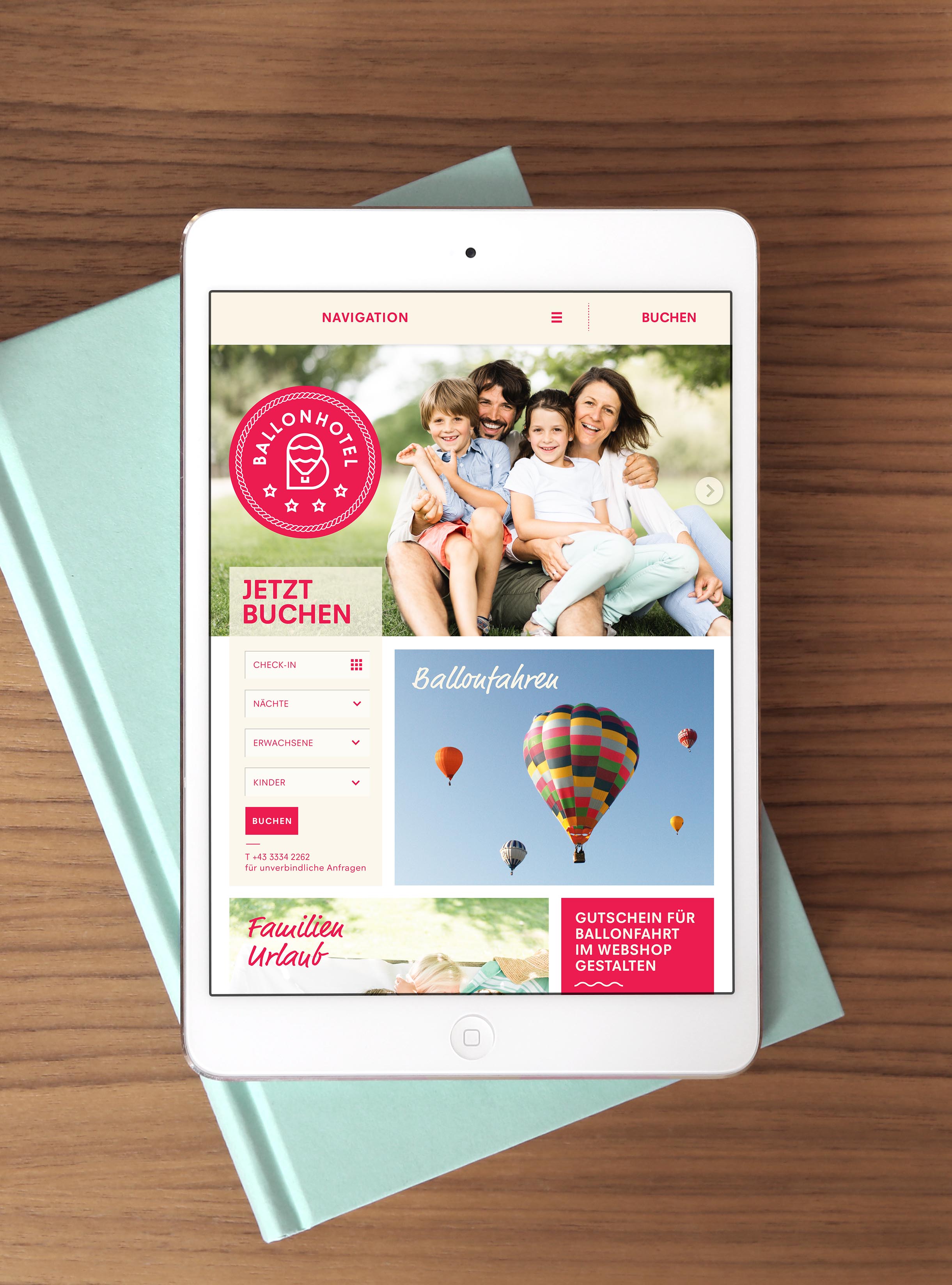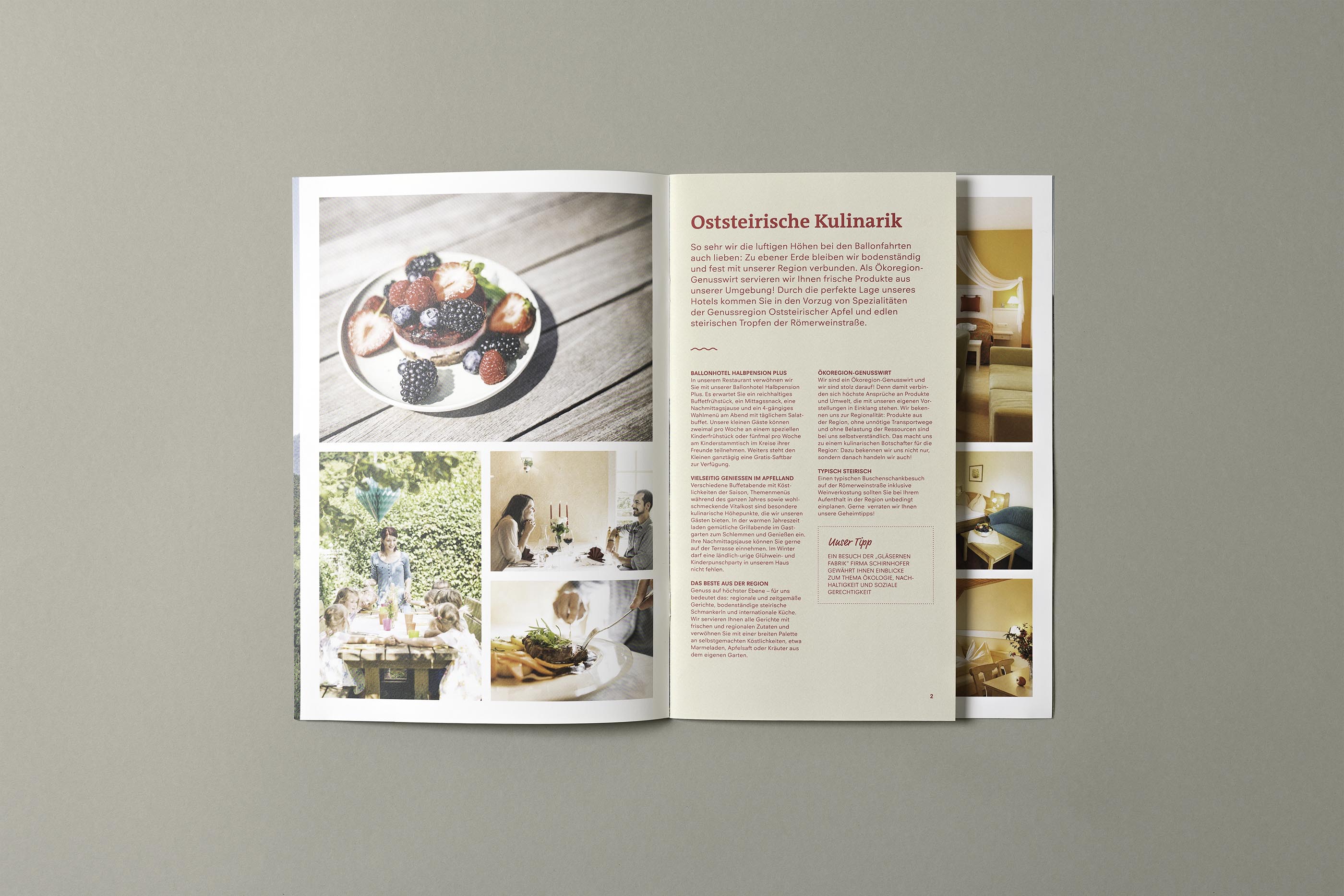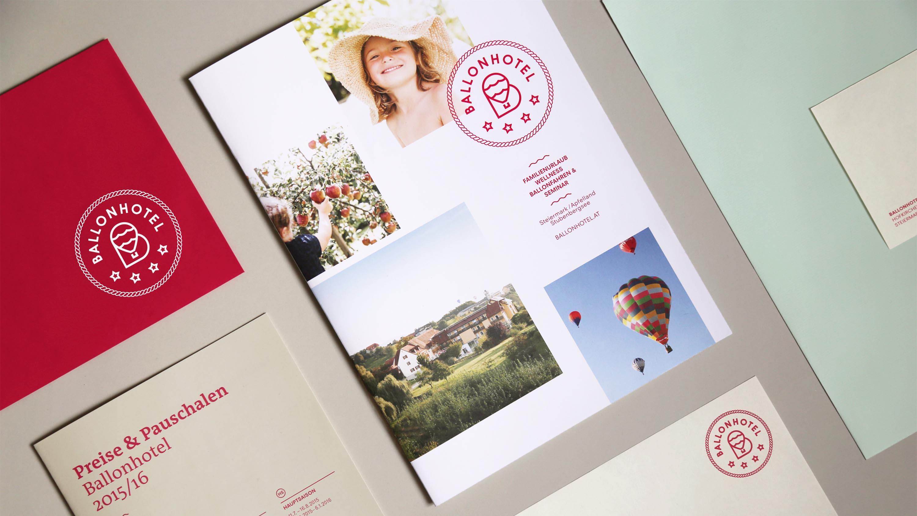 The Ballonhotel – Hot Air Balloon Hotel – is a 4-star hotel situated in an enchanting rural area in Styria, Austria. It not only specialises in hot air ballooning but also offers family-friendly facilities, wellness and regional cuisine to its guests. In the course of a redesign, we created and implemented a new logo, visual system and image world. The main focus thereby lay on maintaining a friendly and playful yet sophisticated feel while conveying the down-to-earthness of the business.