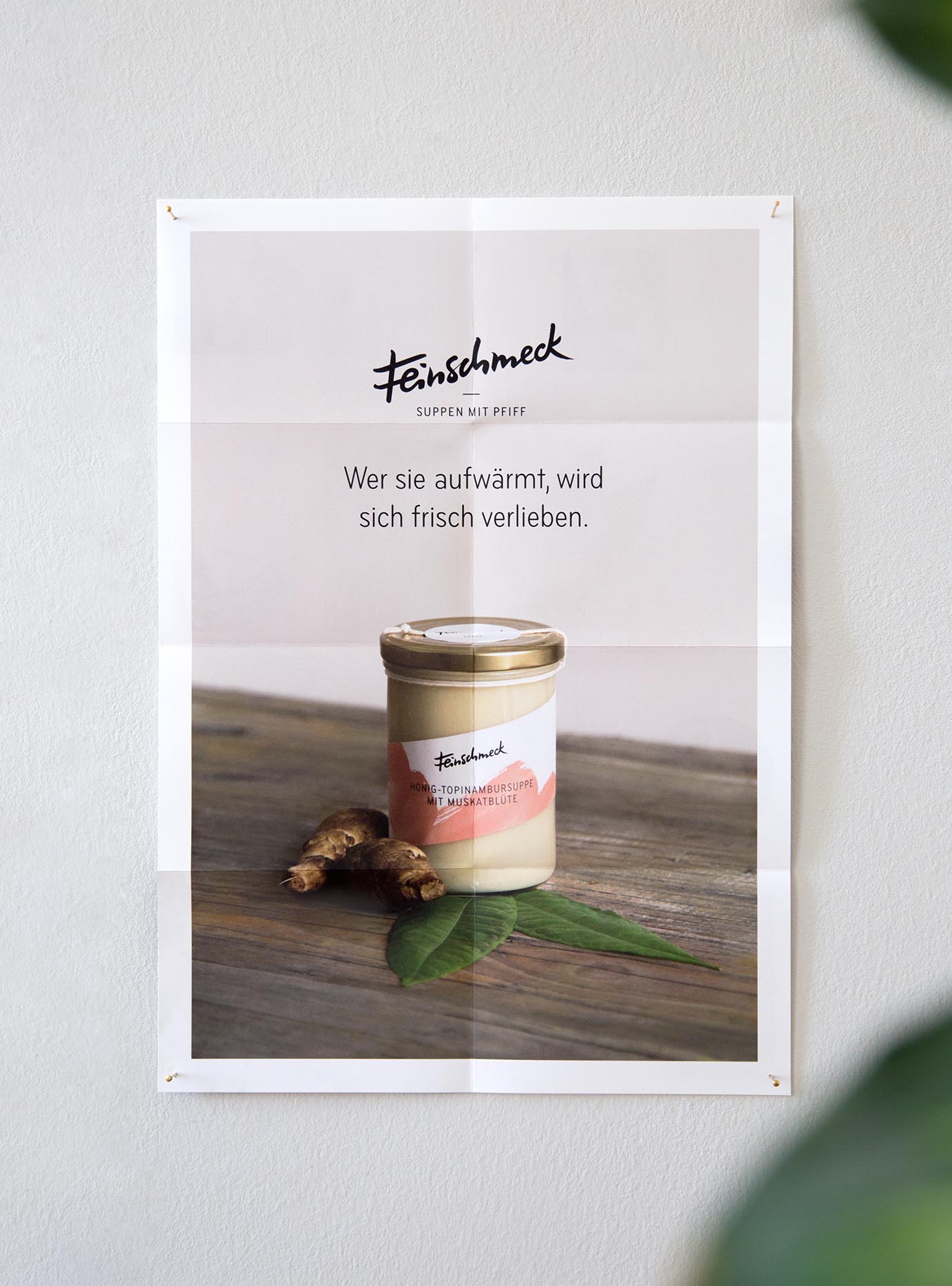 Feinschmeck creates out of the ordinary soups without any added preservatives or artificial flavours. They are cooked by hand with fresh, local ingredients and lots of love. Every taste also comes in a vegan and gluten-free version. We were responsible for the entire branding process, from positioning and naming to creating the visual identity, packaging and website. The handwritten logo and colourful strokes express the passion with which these soups are made and give them a personal touch.